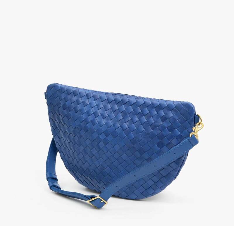 CLARE V Grande Medium Woven Diagonal Fanny in French Blue