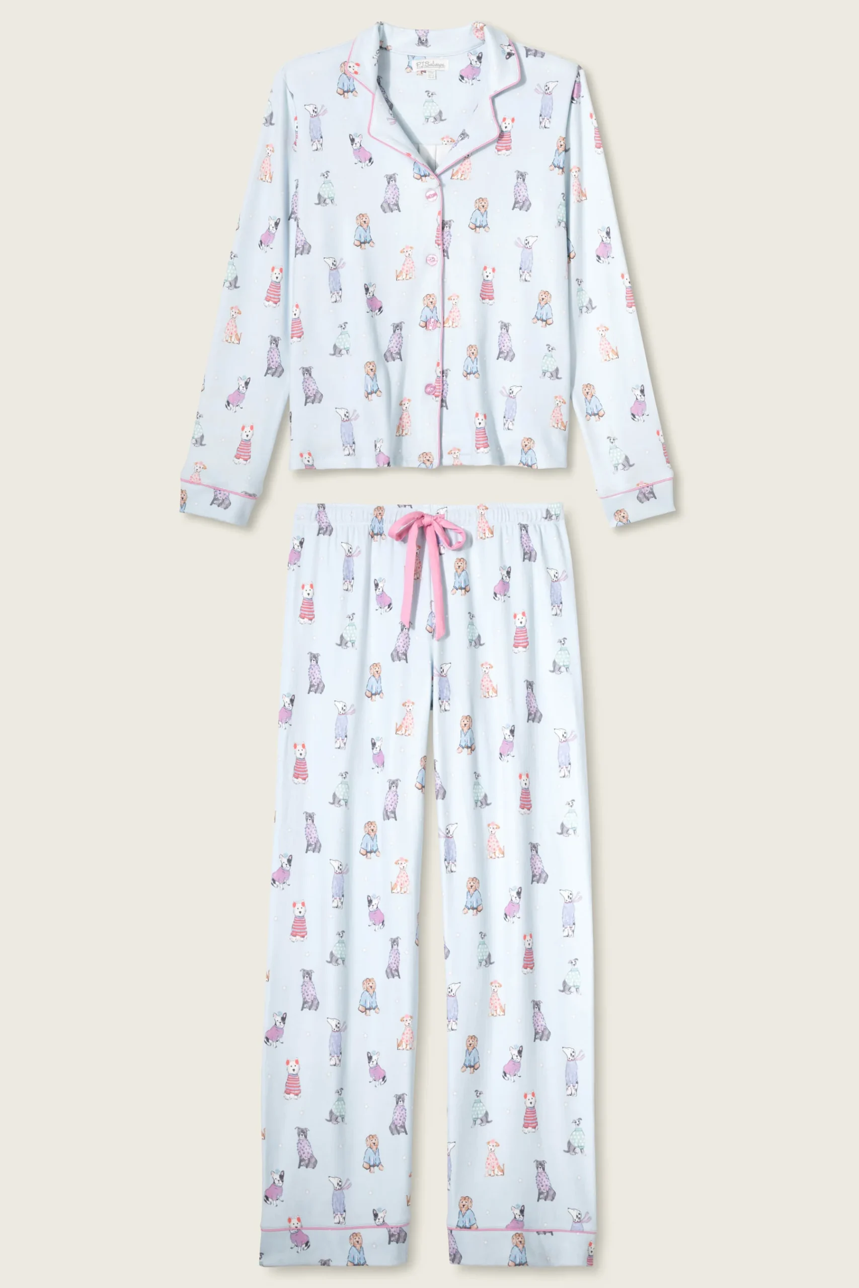 PJ SALVAGE Doggone Cold Print Pointelle PJ Set in Blue Haze