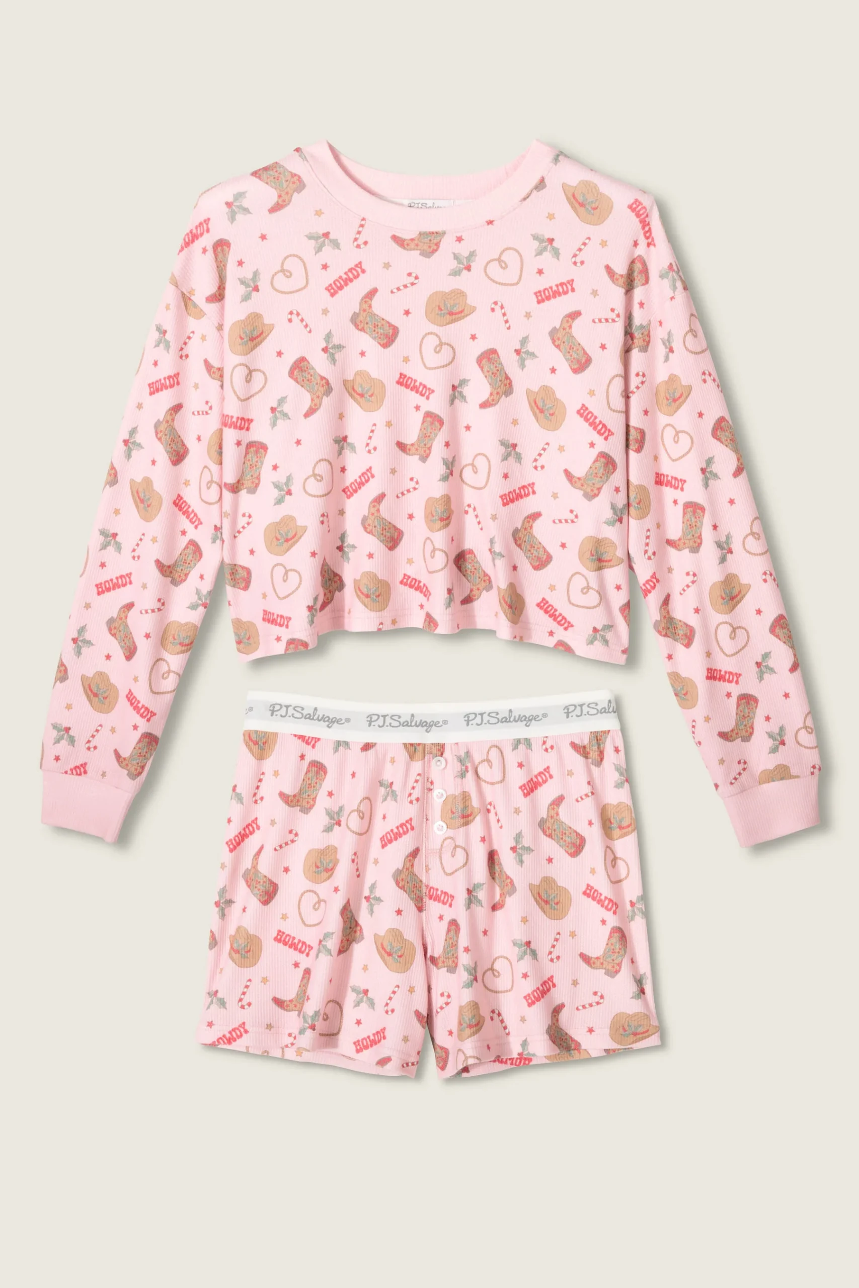 PJ SALVAGE Boyfriend Boxer Western Holiday Print Shorts Set in Pink