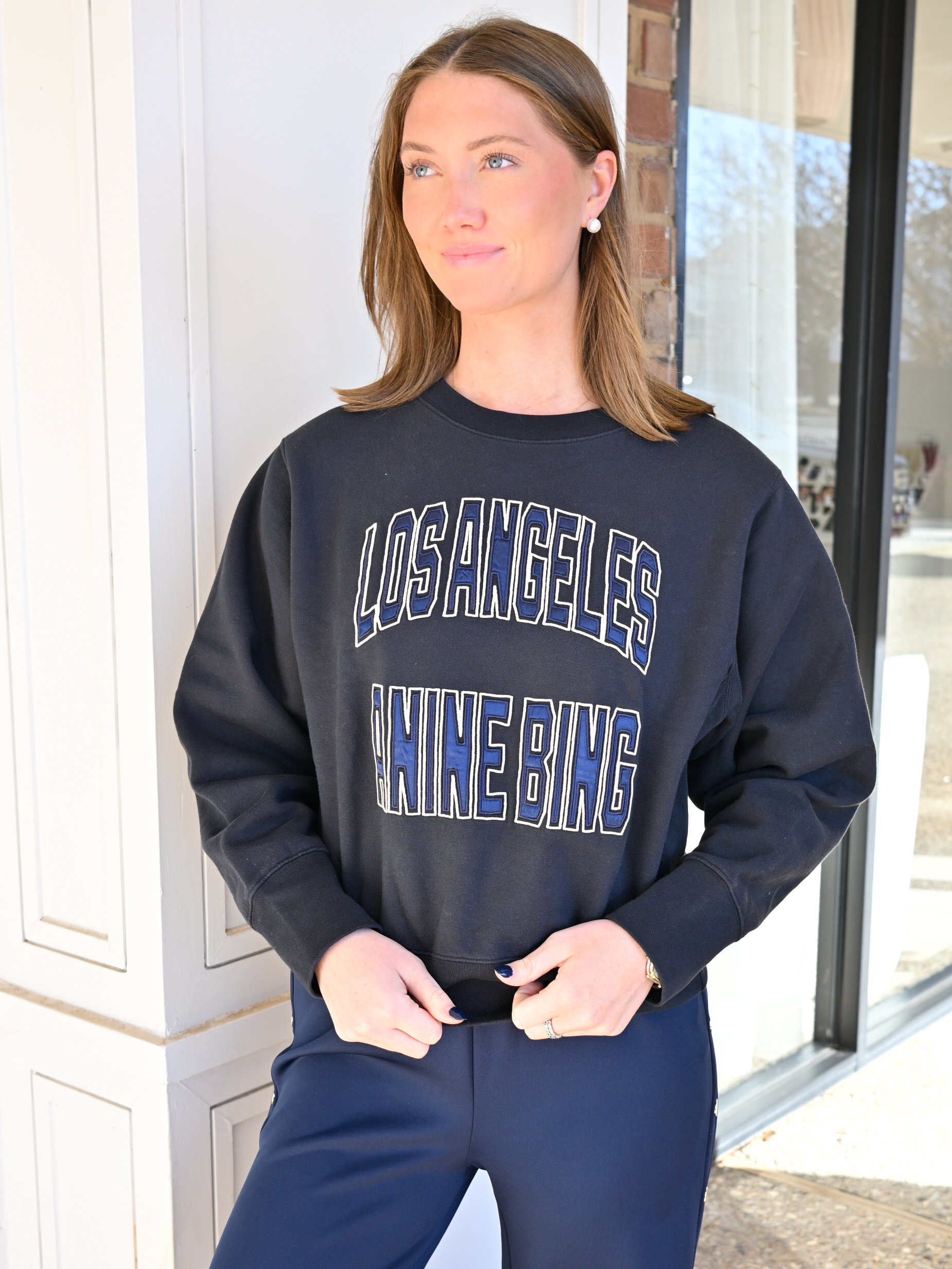 ANINE BING Harry Shrunken Sweatshirt LA in Vintage Black
