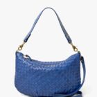 CLARE V Petit Moyen Medium Woven Diagonal Messenger in French Blue