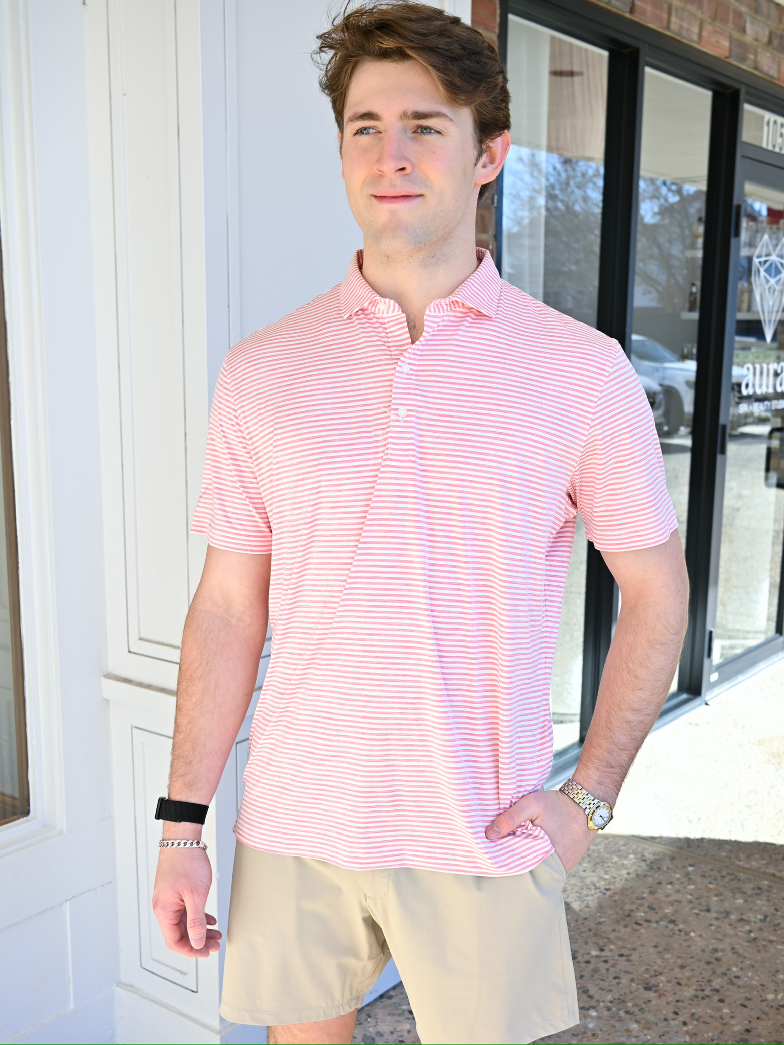 JOHNNIE-O Seymour Featherweight Performance Polo in Pink Lemonade