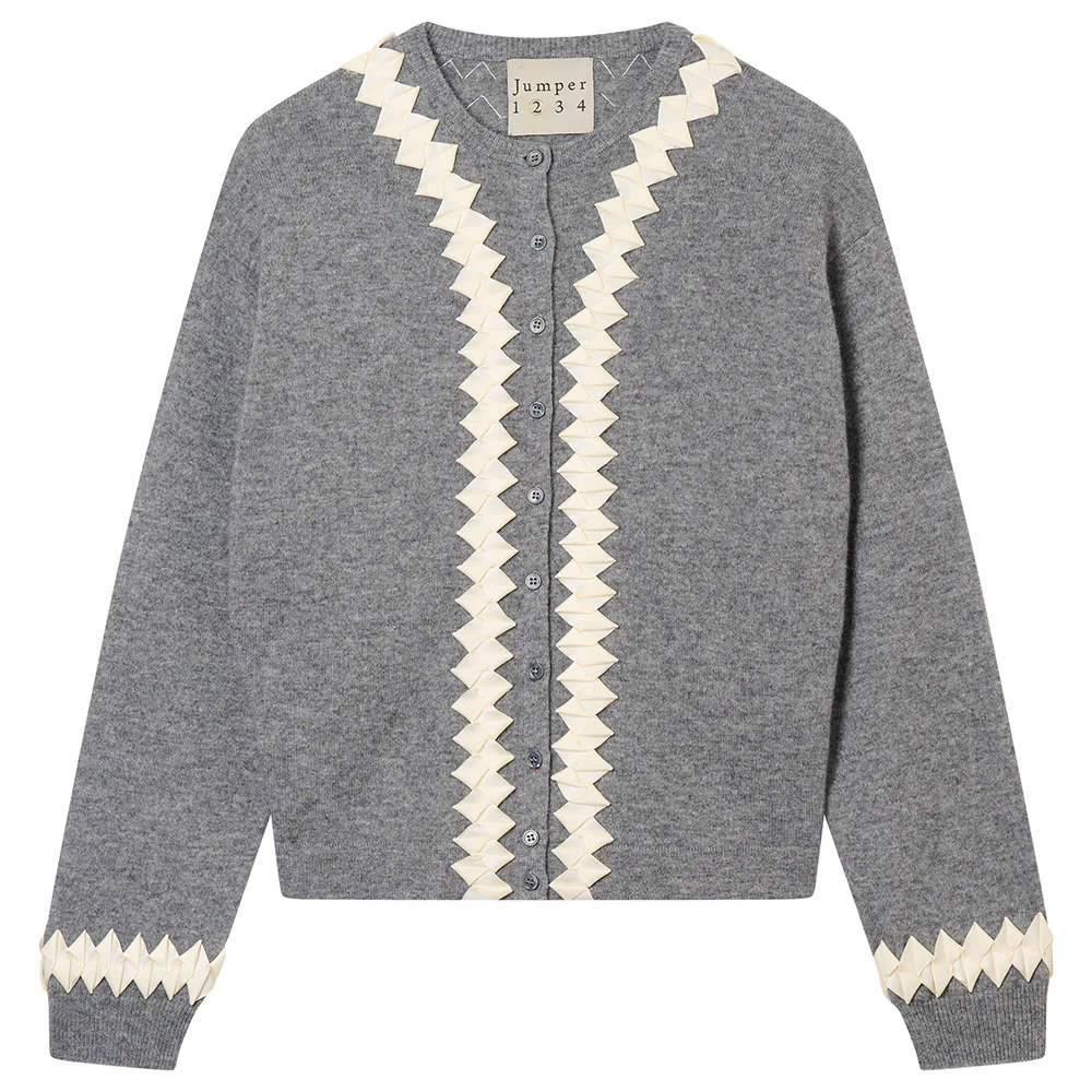 JUMPER 1234 Twisted Ribbon Cardigan in Cloudy/Cream quantity