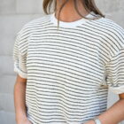 PERFECT WHITE TEE Rebecca French Terry 3/4 Puff Sleeve Sweatshirt in Green Stripe