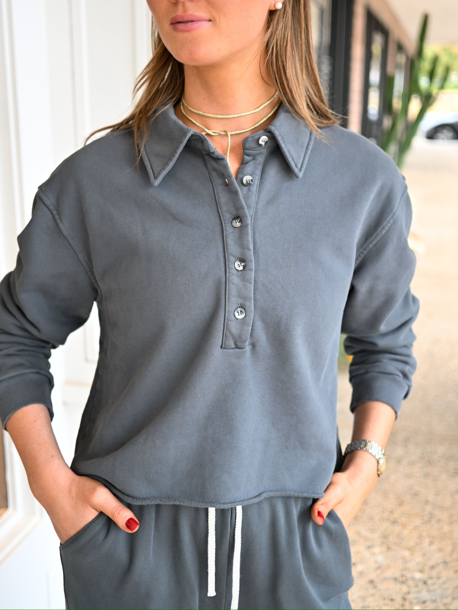 PERFECT WHITE TEE Vinny Fleece 3/4 Fleece Sweatshirt in Charcoal