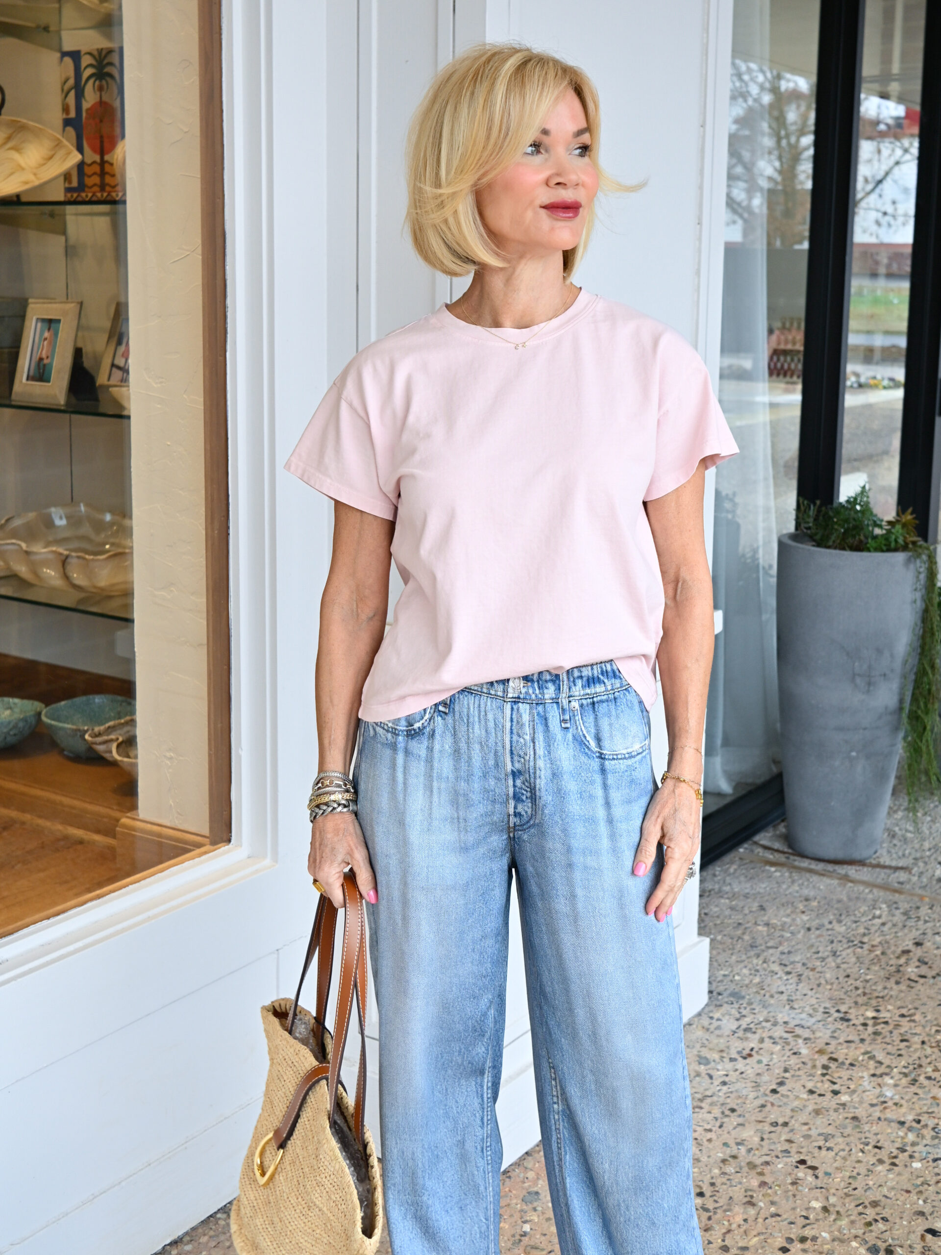 rag & bone Distressed Washed Kelly Boxy Tee in Peony