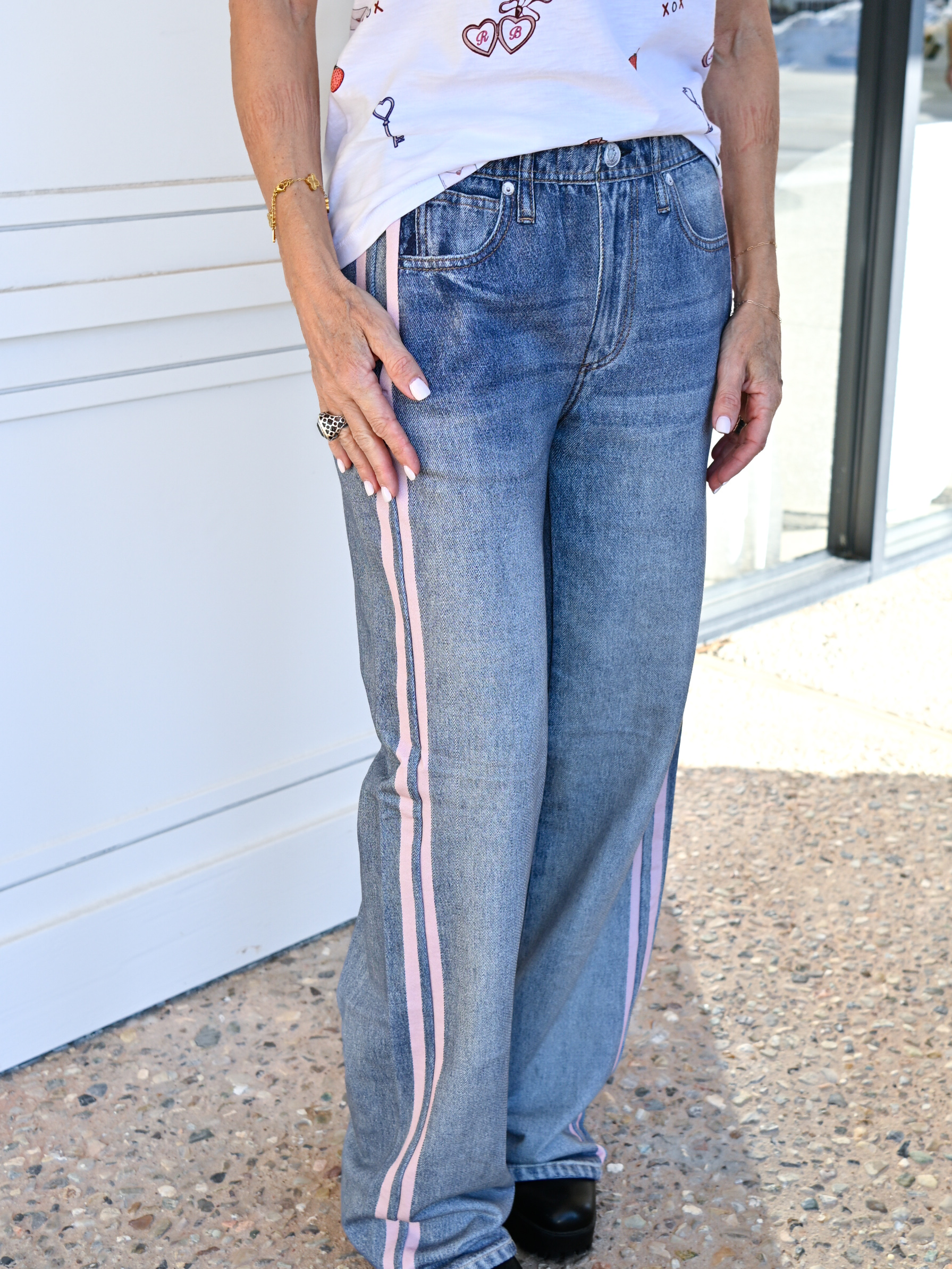 rag & bone Miramar Terry Pull On Track Pant in Pink Stripe
