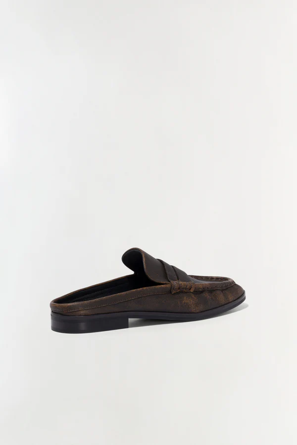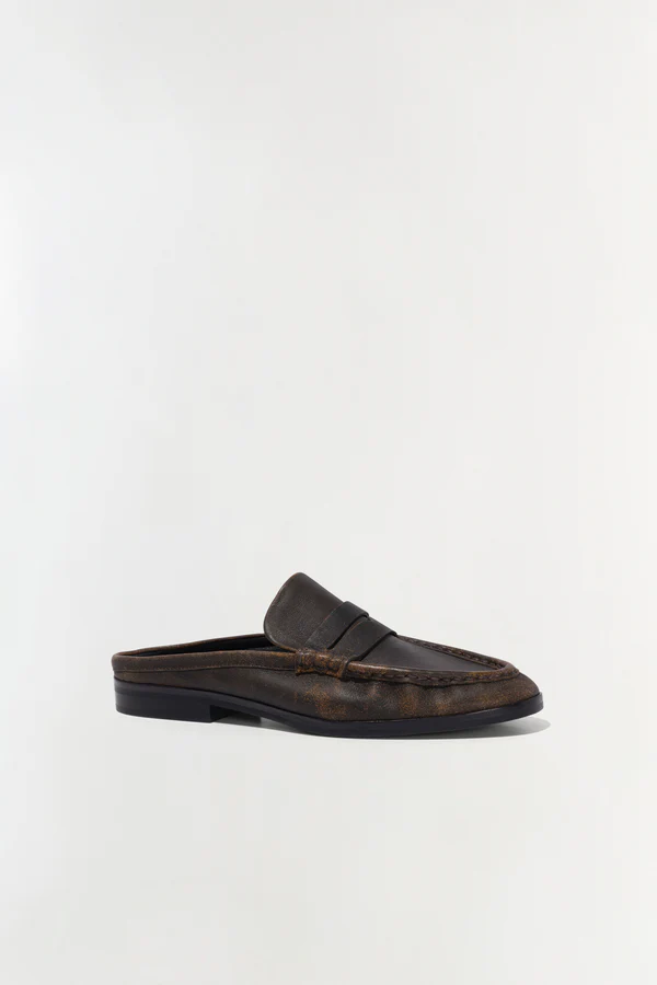 SIMKHAI Dean Leather Loafer Mule in Distressed Chocolate