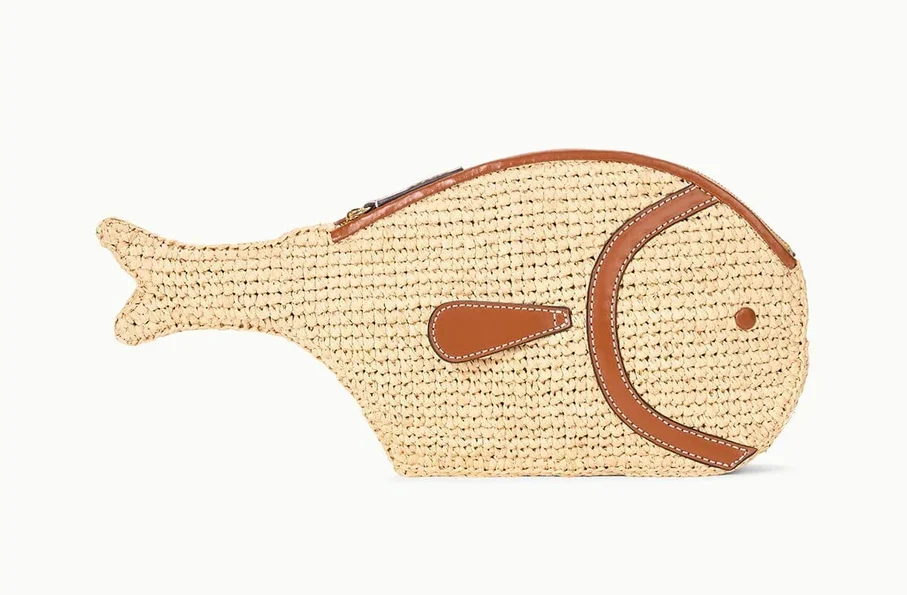 STAUD Pesce Raffia Clutch in Natural/Tan