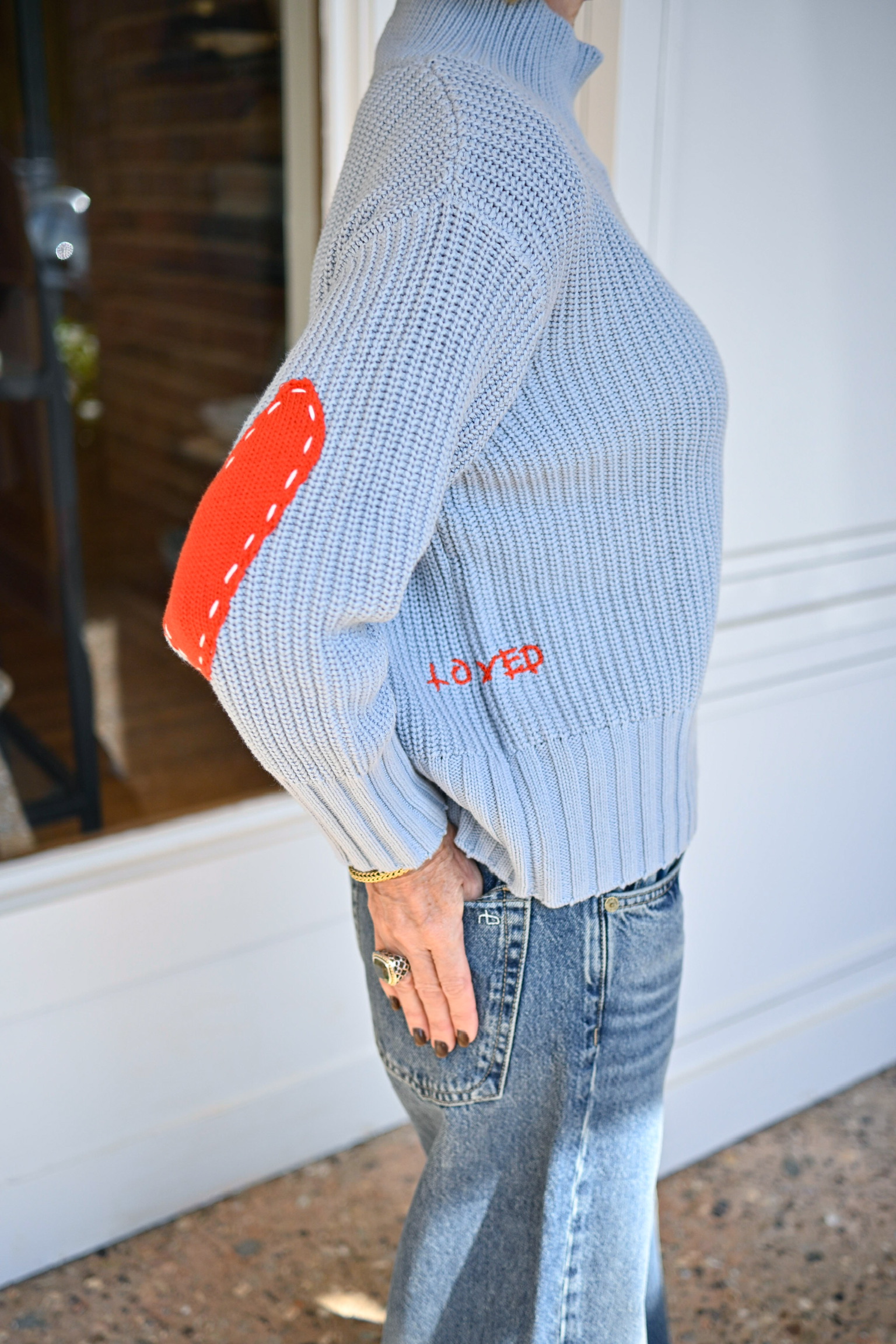 KERRI ROSENTHAL Marlow Imperfect Heart Sweater in Steel Blue